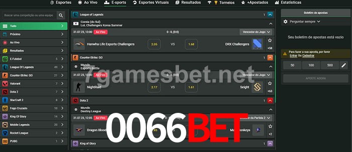 O 0066Bet oferece uma grande seleção de opções de apostas em e-sports com probabilidades competitivas